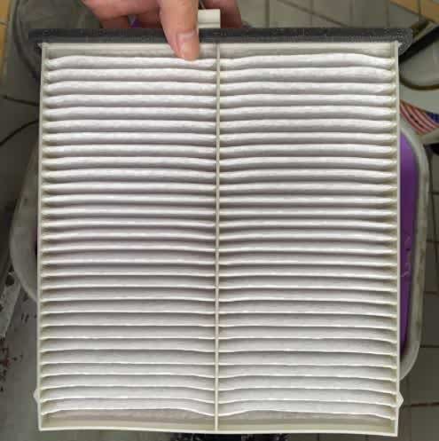 打开手套箱下方的盖子就能取掉已使用过的空调滤芯,由于这台车的车主经常更换空调滤芯,所以上面的积尘并不严重,用气压枪仔细吹一下还能继续使用。红旗H5原厂空调滤芯的价格为79元一个,比较便宜。另外这次更换并未收取工时费,前后节省掉将近100块钱。