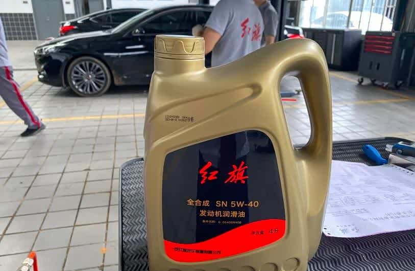 此次我们加注的是红旗原厂全合成机油,标号为SN 5W-40,通常情况下这款机油一年四季都能使用。像北方冬天太冷的话可根据需求换其他标号的机油。原厂全合成机油为每桶259元,总共4升。某品牌标号0W-20的全合成机油零售价279元,价格比原厂还贵一点,推荐大家使用原厂机油就行,最起码比副厂机油的适用性更强。更换机油的工时费为132元,因为换机油要升起车辆,工序比较复杂,收费稍贵一点也是可以理解的。