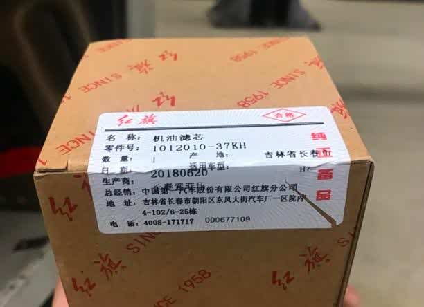 机油滤芯我们用的也是红旗H5原厂的,标价59元一个,价格算是比较便宜的,副厂的机滤都得30-40一个,因此不建议大家使用其他品牌的机滤。红旗H5的机滤位于底盘下方,可以在放油时顺手给换上,所以工时费收的也很合理,只要40元。