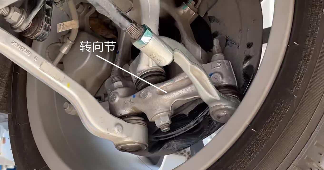 通过图片我们可以看到,凯迪拉克CT5前悬架的转向节体积非常小巧,为控制臂留出更多的空间。细节方面,设计师对转向节中间部位进行了减重设计,但是为了提高安全可靠性,周围又做了加固处理。通过结构形状上的优化,使转向节既满足了强度、刚度需求,又达到了减轻重量的目标,继而提高转向灵敏度。