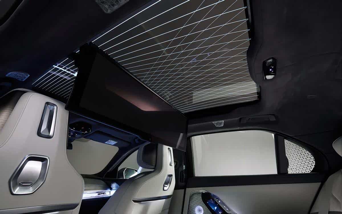 内装采用悬浮式曲面屏搭配环绕光幕的极简设计手法,并以全车系标配的顶级水晶内装套件点缀。