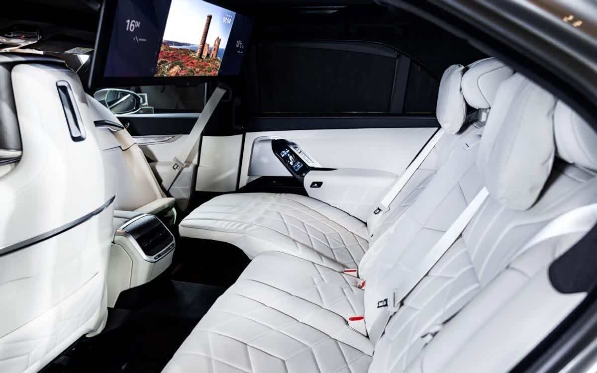 首创的31.3寸8K后座悬浮式剧院屏视觉震撼感十足,不过仅限两款Excellence高配车型标配。