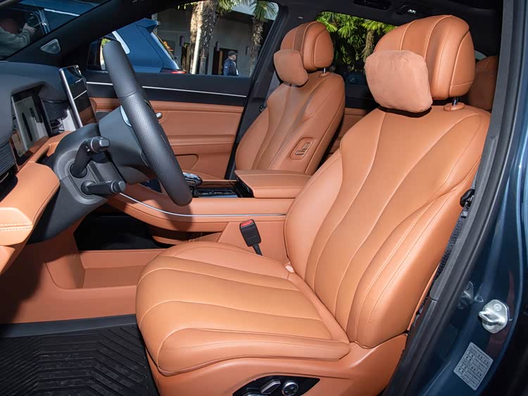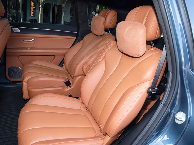 新车座椅采用Nappa真皮+仿皮两种材质拼接设计,提供5座和6座两种布局。前排标配了带有4向腰部支撑调节的8向电动调节座椅,前两排座椅都拥有加热、通风、按摩功能。六座版右后座标配零重力座椅。同时,后排MagLink还可适配13.2英寸OLED大屏,提升了车辆的娱乐体验。