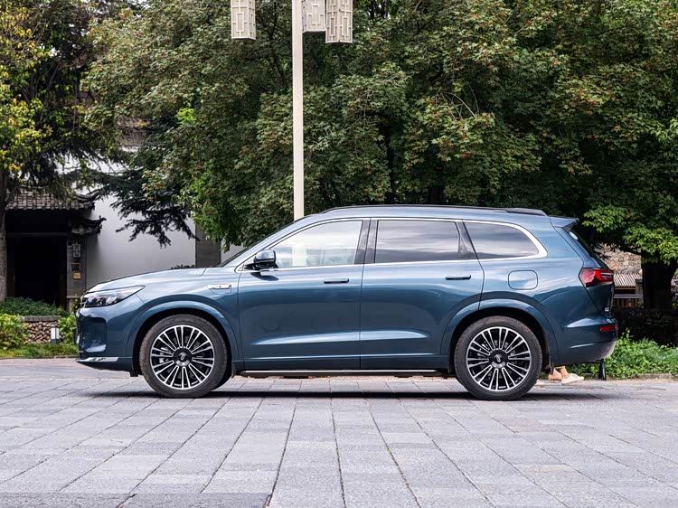 新车长宽高为5020x1945x1760mm,轴距为2820mm,定位中大型SUV。车身侧面采用隐藏式门把手设计,车顶配备行李架,标配20寸七辐式轮毂,同时提供21寸双十辐轮毂可以选装。车尾部分采用贯穿式尾灯设计,并且在车顶配备了造型比较突出的扰流板。新车增加了“星际蓝”的车身配色,同时还有鎏金黑、深空灰、天青蓝和冰晶银共5种车身颜色供用户选择。