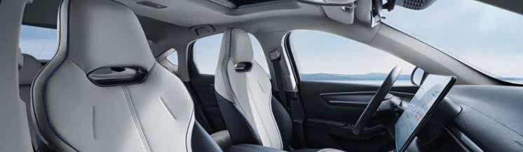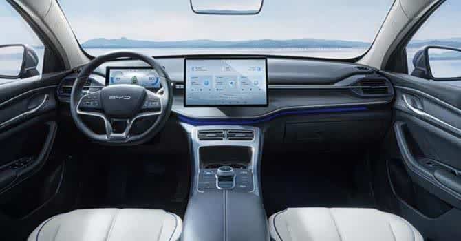 进入车内,新车的内部整体以简洁、清新为主,配色有玄武黑、苍弯灰、量子哑光灰和釉黑蓝四种颜色,中控台上还有着蓝色氛围灯的点缀,符合新能源汽车的前卫感,同时还配备了全液晶仪表盘和自适应可旋转的液晶中控屏,内置DiLink智能网联系统、全场景数字钥匙等,科技氛围十分的浓郁。空间上,新车的长宽高分别为4780*1837*1495毫米,轴距为2718毫米,属于一款主流的紧凑型家轿汽车。