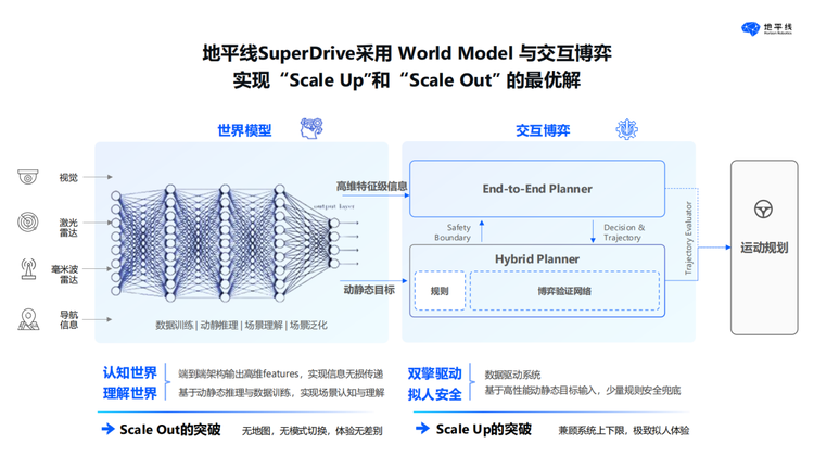 高阶智驾要达到用户好用、爱用,还需要同时解决性能提升(Scale Up)和场景泛化(Scale Out)两大问题。目前即使是行业头部智驾公司都难以将其中一点做到极致,同时兼顾更面临巨大挑战。地平线自成立以来持续研究布局前沿软件算法,构建了全新的高阶智驾技术方案,通过应用领先的端到端World Model以及交互博弈算法,成功打破了技术迭代中常见的“跷跷板效应”,同时突破性能提升与场景泛化难题,打造每刻、每程的拟人化产品体验。