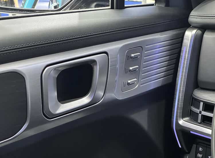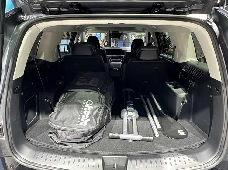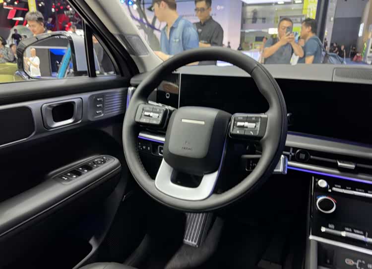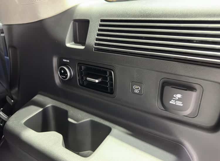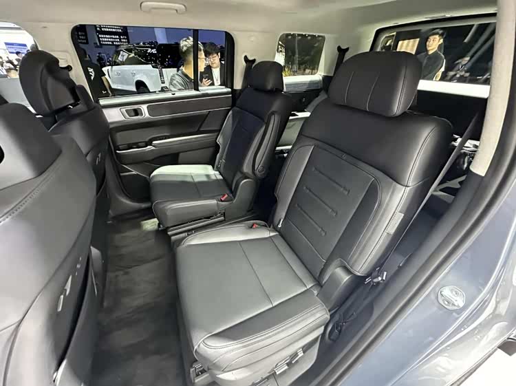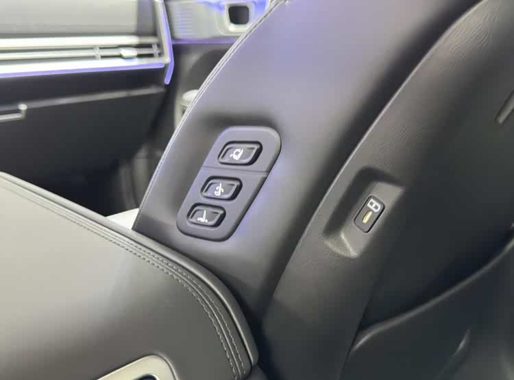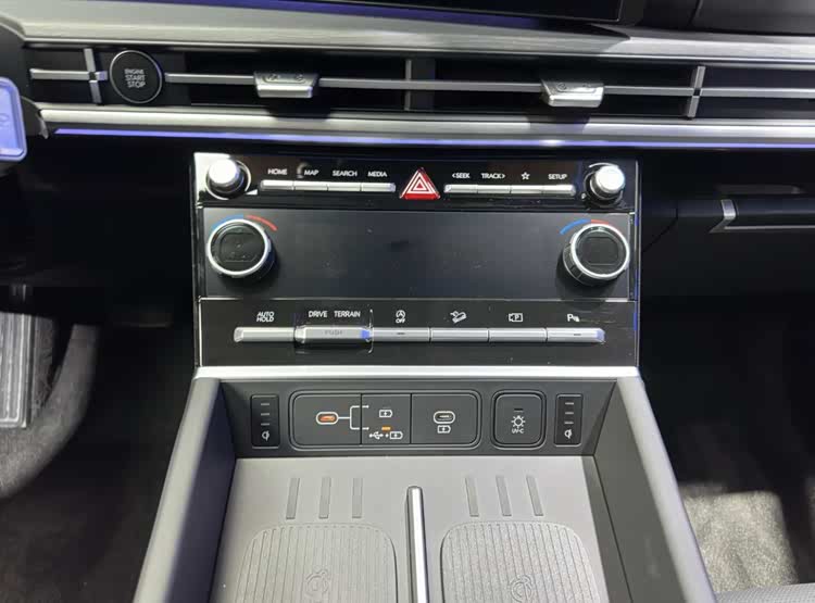 前排的副驾带有一键零重力模式,主驾带有座椅按摩功能。胜达标配两块12.3英寸的曲面屏,带有无线Carplay,下部的6.6英寸触控屏可以快速调节空调温度,旋转式的电子怀档释放了中控空间,标配手机无线充电。