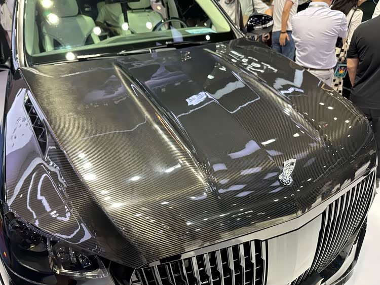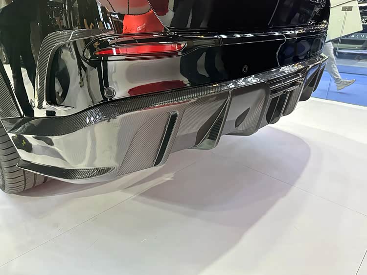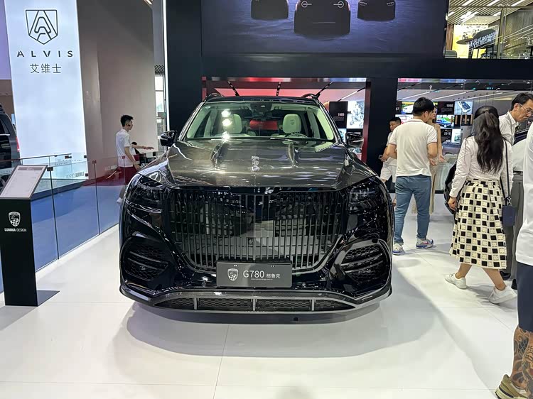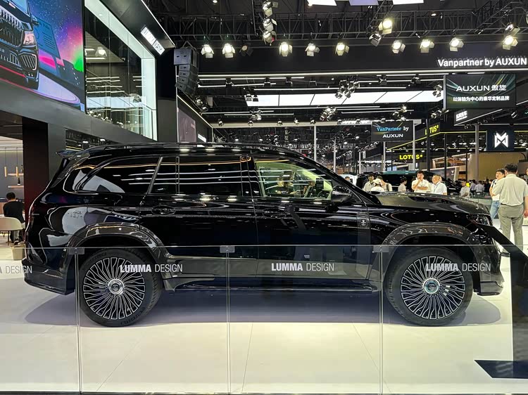 LUMMA G780格鲁克在奔驰GLS 450的基础上,进行了一系列豪华风格的改造。将原先采用黑色内饰和白色仪表台的车顶重新加以装饰,并增加了全新设计的前格栅以及前保险杠等细节。车辆的整体设计呈现出更为简练和时尚的风格。车头部分采用了流线型的线条设计。前端的银色直瀑式中网展示了显著的黑化效果,其设计风格与迈巴赫GLS有更多的相似之处。机舱内装饰件采用了大量碳纤维材料制造而成的金属材质,使整个内饰显得十分厚重。前方的奔驰车标已经被位于机舱盖之上的LUMMA虏曼品牌立标所取代,并在前部的下侧加入了更加运动化的前唇设计元素。