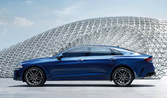 侧面看来,略微下压的前机盖与溜背设计,带来经典的轿跑侧颜,视觉颇为动感,而U型环绕式镀铬装饰条则为整个的时尚精致感加分不少。车身尺寸方面,起亚K5的长宽高分别为4980/1860/1445 mm,轴距2900mm。