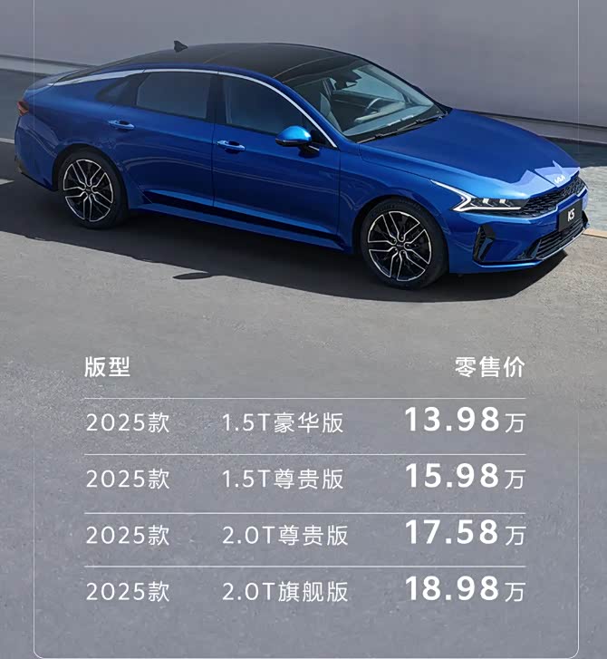 除了日系和德系,在中国市场表现较为黯淡的韩系车也没闲着,2025款起亚K5也在近期正式上市了,官方指导价13.98~18.98万元,相比老款,新款起亚K5的售价至高降低了2.3万元,同时配置也实现了大幅提升,真正做到了降价增配,主打一个量大管饱。相较于帕萨特、凯美瑞之辈,性价比非常高。