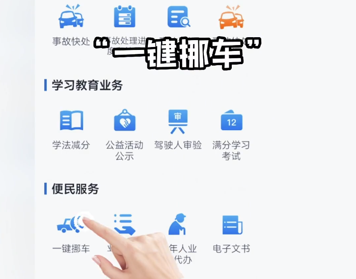 具体的操作步骤如下:首先打开“交管12123”应用程序,然后点击“更多”选项,接着找到“一键挪车”服务,按照提示申请挪车,阅读并同意相关条款后,上传必要的提醒内容及照片等信息,完成提交。