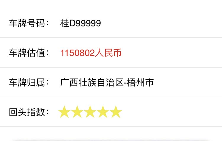 查询了一下2011年胡润中国富豪榜总榜单,当年,许淑清以51亿元的身家位居富豪榜312名,十几年前身家就几十亿,所以,买辆千万级迈巴赫也不算什么。在网上估值了一下车牌,价值115万,千万级豪车配上99999车牌,回头率爆棚。那时候,桂D99999算得上广西出镜率和回头率最高的豪车之一。
