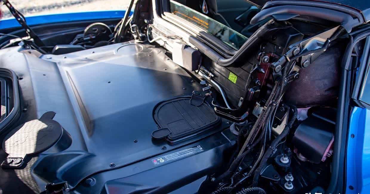 对我来说,体验 Corvette 敞篷车的折叠电动车顶是全新的体验。这款敞篷车的重量仅比轿跑车重 36 公斤,可以通过驾驶员车门上的开关或钥匙扣上的按钮来打开和关闭。我们发现按命令打开和关闭它有点麻烦。坦率地说,如果不是因为敞篷车的折叠硬件遮住了 V8 发动机的任何可视视野,我可能只会选择轿跑车及其更简单的 targa-top 解决方案。