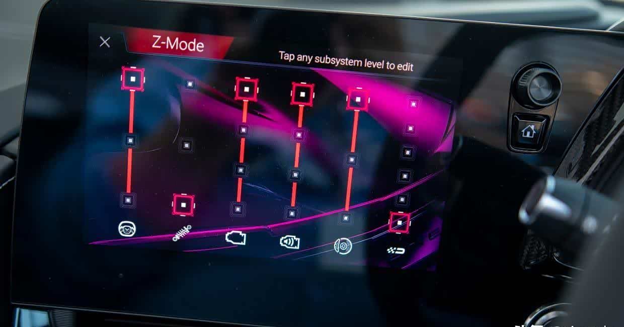Z 模式允许驾驶员根据自己的选择调整各个元素的强度。在新西兰的乡间小路上,我觉得标准运动模式和其他模式一样好。