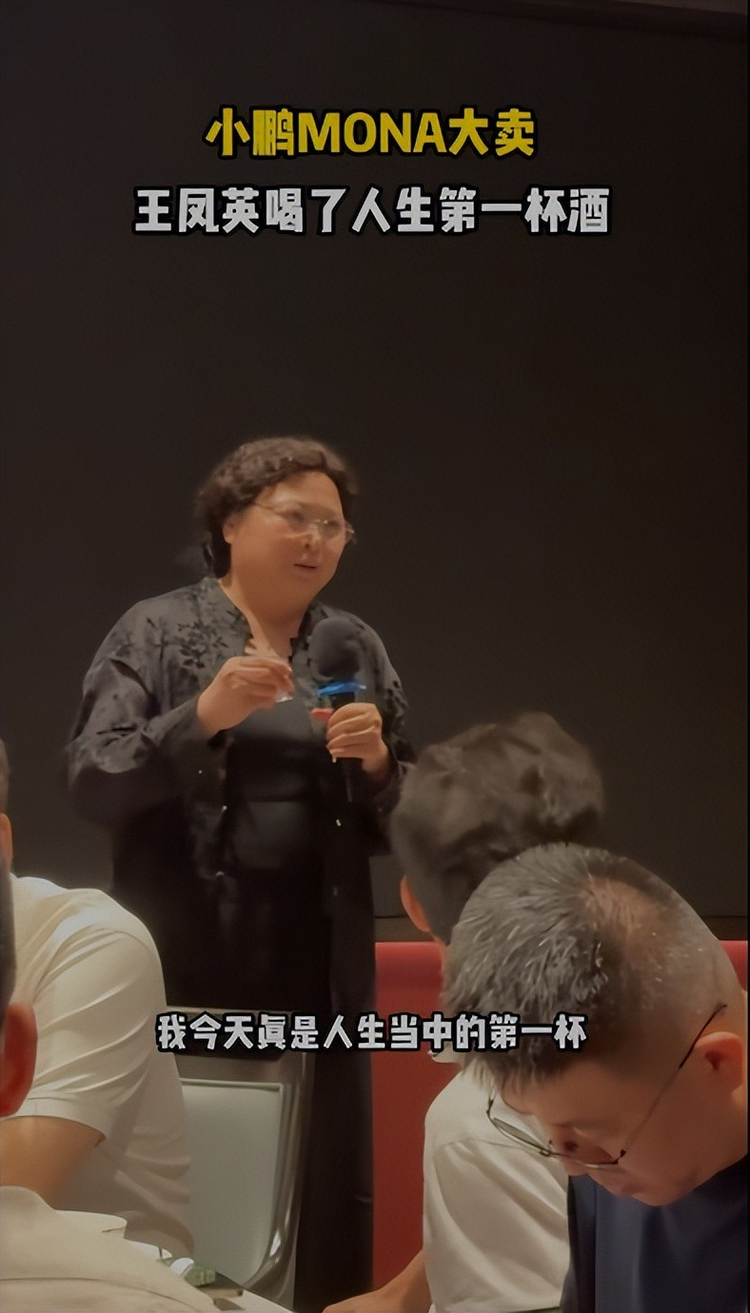 王凤英喝下人生第一杯酒,为庆祝 小鹏MONA M03(参数|询价)销量的初步成功。
