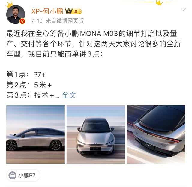 不过相信大家也知道,何小鹏此前也在微博上预告过,全新的P7+,即将在第四季度正式亮相。该车最大亮点,纯视觉高阶智驾。
