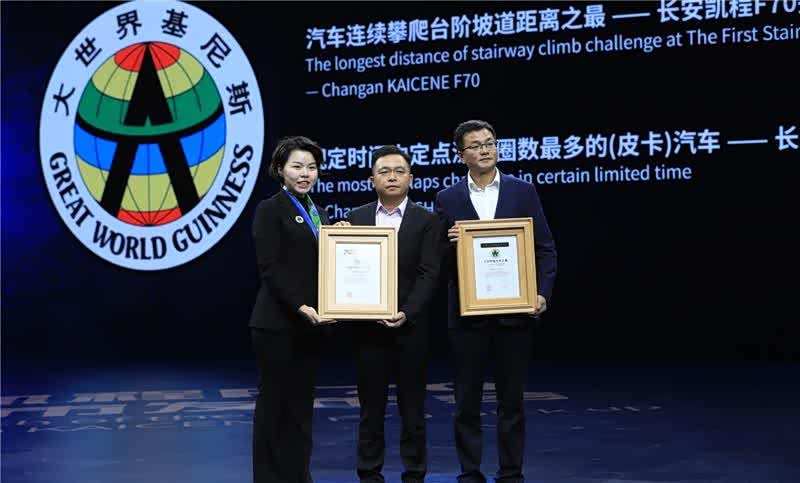 在新车上市发布会的过程中,上市大世界基尼斯官方向长安汽车颁发了两项由长安凯程F70创造的世界记录,分别是在重庆长江第一梯挑战了“汽车连续攀爬台阶坡道距离之最”,又成为了“规定时间内定点漂移圈数最多的皮卡(汽车)”。从这两项挑战中我们就能一窥长安凯程F70的强大通过能力和操控性能,车辆拥有29°的接近角和27°离去角,还有230mm的离地间隙,配合分时四驱和伊顿差速锁,越野性能足以比肩很多硬派SUV车型。