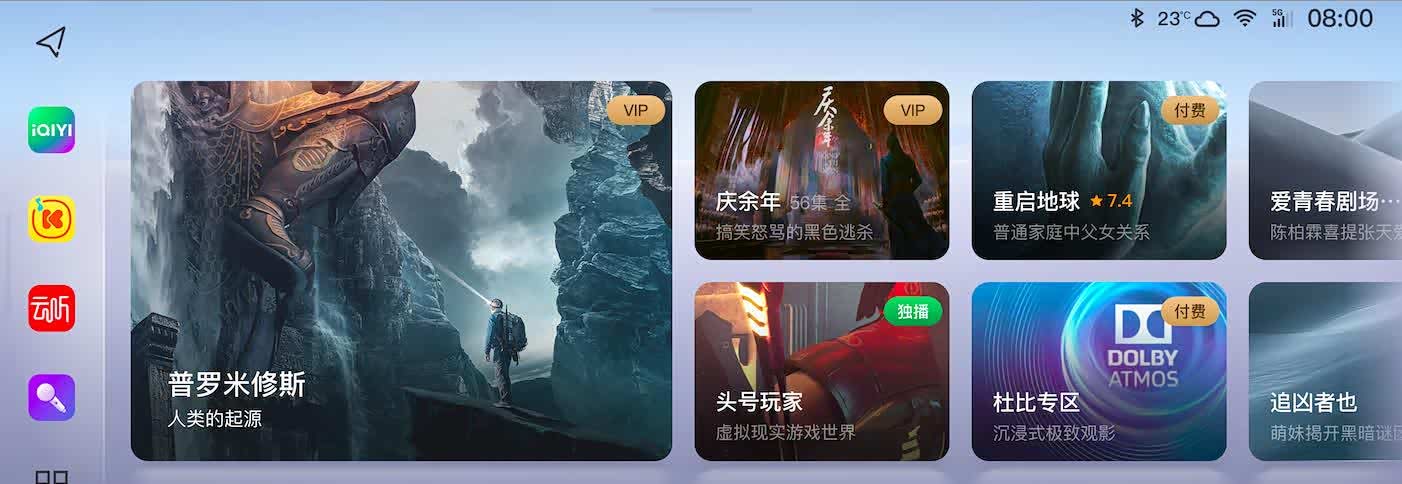 本次OTA还扩充和优化了娱乐资源,让用户的车内生活更加丰富。副驾屏迎来全面焕新,首页更新为爱奇艺热播推荐,直接选择当前最热好剧,让副驾驶在长途乘车时拥有更多乐趣。娱乐界面还新增了央广旗下在线电台资源“云听”,让喜欢听电台广播的用户拥有更多的选择。车机的多媒体页面完全重新设计,操作逻辑统一优化为竖向翻页,完全复刻手机及智能电视的操作方式,更加易用,降低用户的学习门槛。在中控屏上,音乐和电台合并为媒体卡片,用户可以在卡片上快捷切换媒体音源。