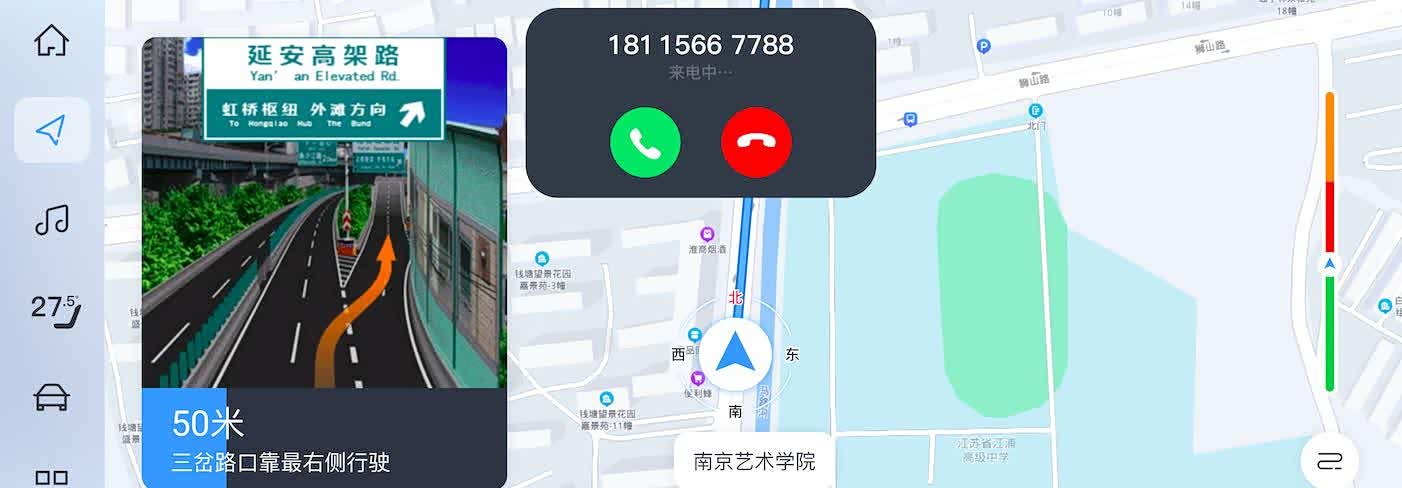 岚图FREE OTA3.0版本带来了如同iPhone的灵动岛设计,以简洁的设计,实现了丰富交互。作为车机的第四屏,“灵动岛”功能可以以醒目的方式弹出导航引导、来电、路口放大图、位置发送到车等各种重要信息,同时界面可以根据消息类型的不同而灵动变化,行车路程、来电信息可实时掌握,不仅驾驶安全,也不必担心错过路口。