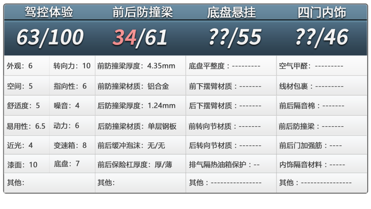 那么这辆车的底盘情况如何呢?会不会有意外的差异呢?毕竟价格贵了两万!还请继续关注后续的拆车内容。(本文及视频中的测量数据结论观点仅对此辆车负责,测量数据对公示的实验方法负责。)