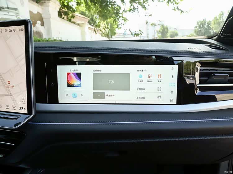15英寸的智能 2K 悬浮式中控大屏是采用了向驾驶位偏转的设计,这样更有利于驾驶者使用。车机系统是搭载了高通 8155 车规级芯片系统,响应更快,带来更丝滑的操作体验。另外,车型配备了智慧导航、由科大讯飞提供的智能语音识别包、腾讯软件生态以及苹果CarPlay/百度CarLife/华为HiCar等手机互联功能。