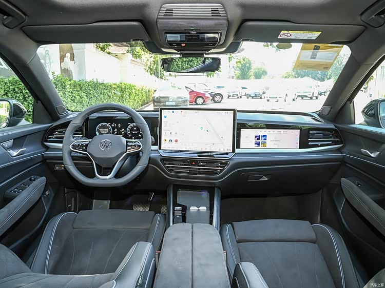 进入车内就能明显感觉到帕萨特Pro在保持豪华感的同时,大幅提升车内的科技感。中控区域的设计更加简洁,重点突出三块屏幕。当然,车型在内饰用料和做工上依旧有不错发挥,大量软质材料的运用保证了高级感。