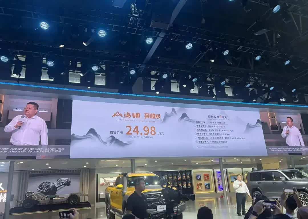 山海炮穿越版在此次成都车展上开启预售,预售价为24.98万元。该车是基于坦克平台打造的全球长续航高性能豪华皮卡,是一台可以带一家人舒适出行,从容征服全球山海的高端宽体皮卡。