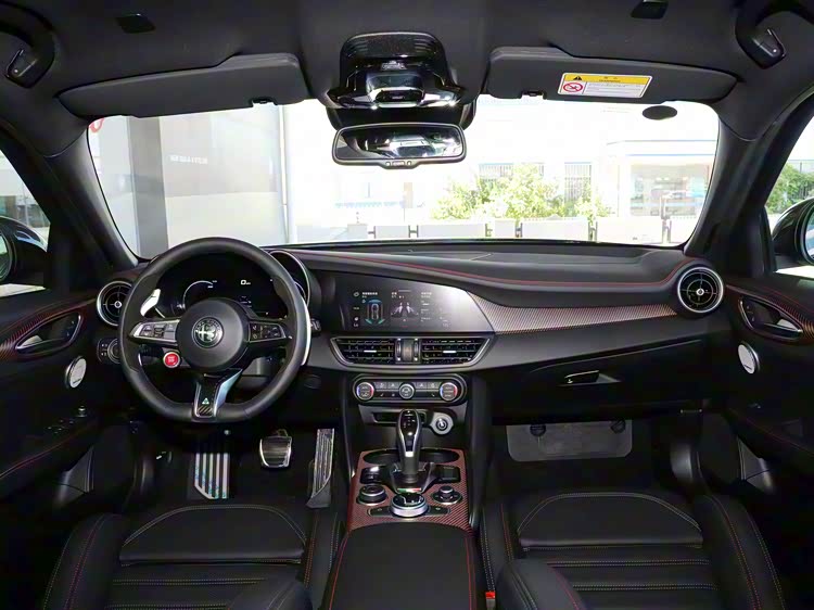 此外,新车还在车顶、中网的以及后视镜上采用了碳纤维材质。另外,阿尔法·罗密欧著名的花瓣式“Teledial”轮圈,也出现在这款车上(19英寸),卡钳也一并改为黑色。