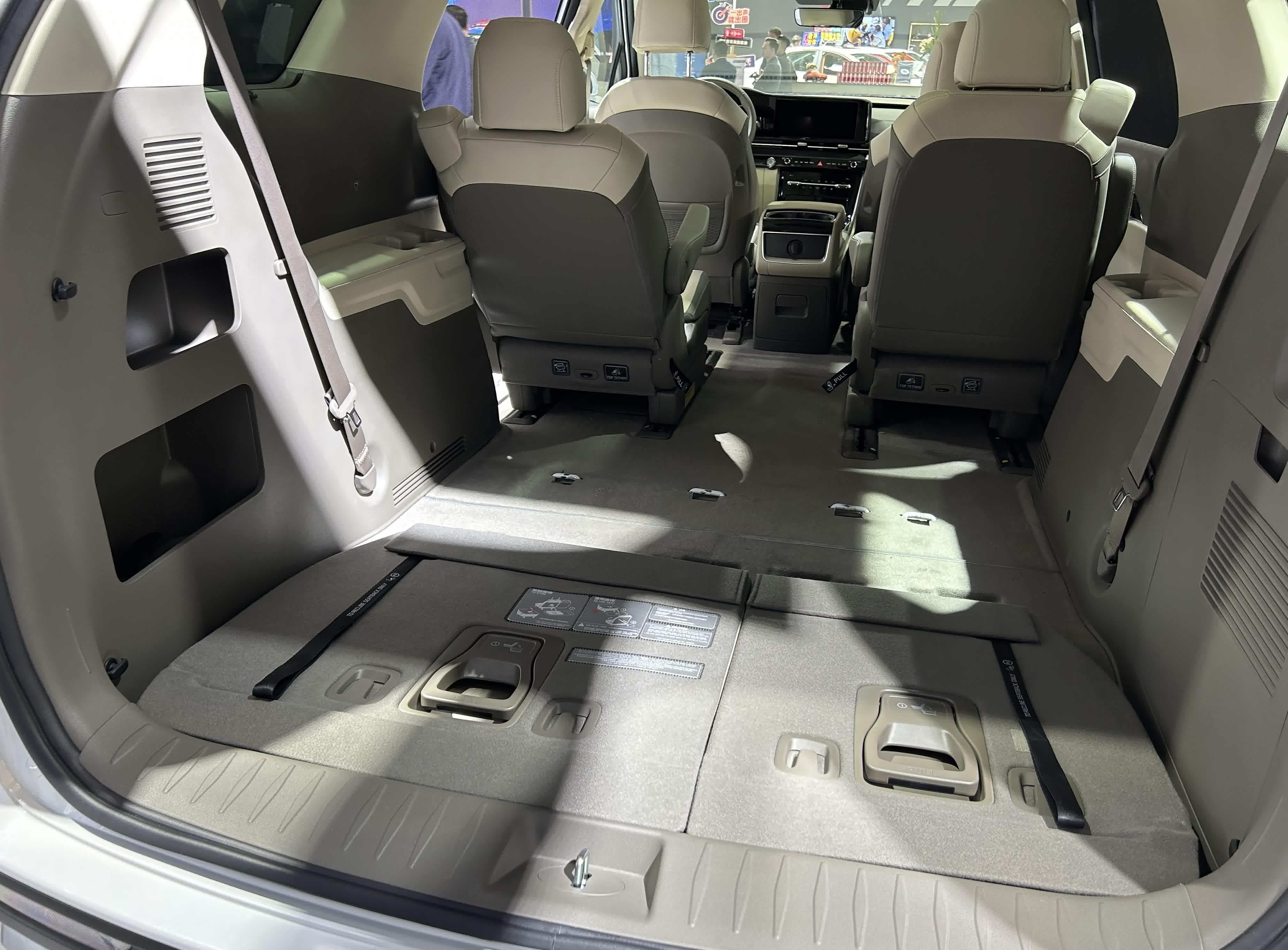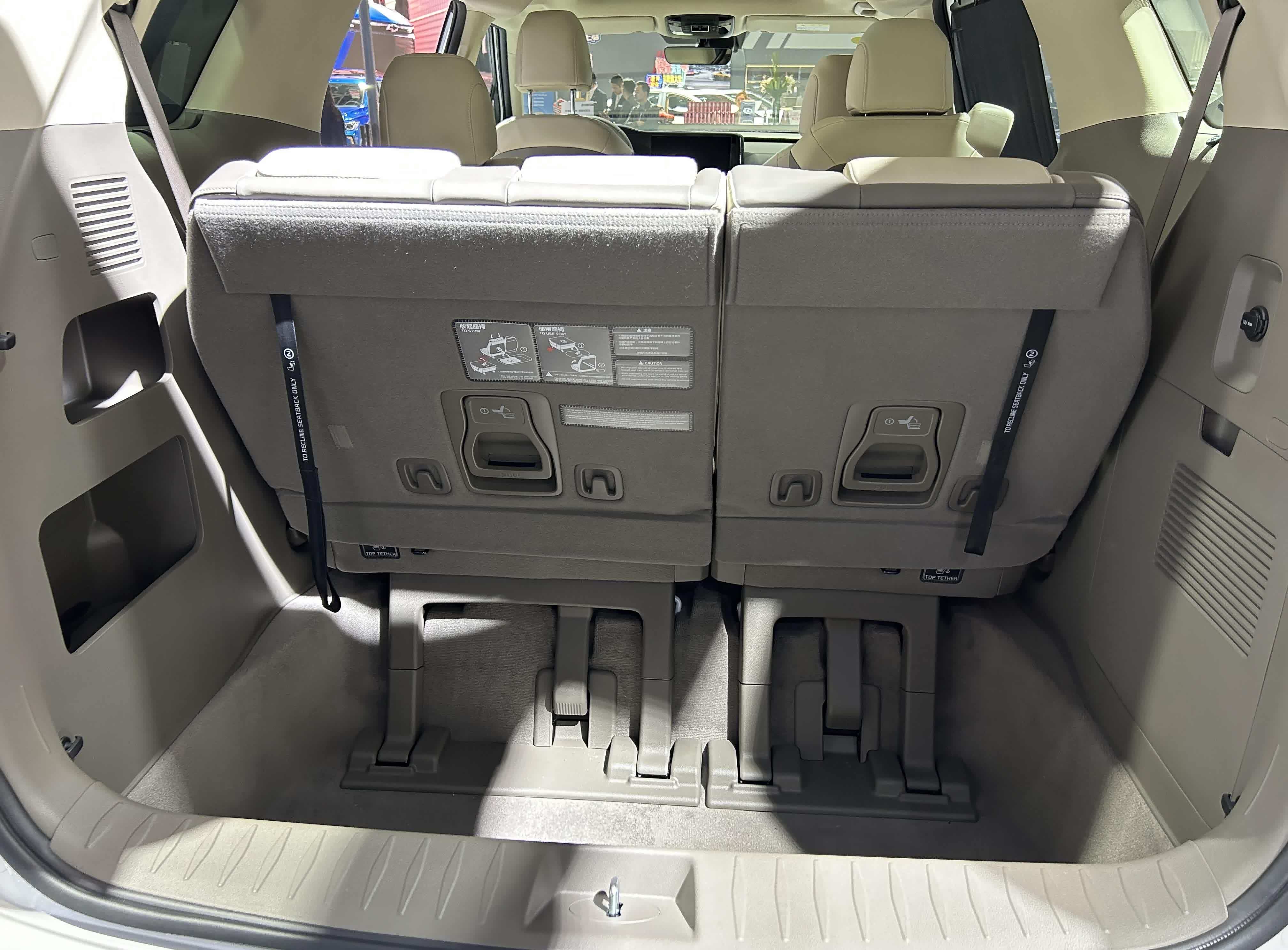 当然这份巨大也是体现在车辆内部的,嘉华的内部乘坐空间是没有什么问题的和主流的车型相比在同一水平,而且他的空间还有一个亮点,那就是极其巨大的后备箱。由于他的第3排座椅使用了收入地板下方的设计,因此在收起第3排座椅的情况下他的后备箱空间基本上相当于中大型SUV放到两排座位的空间,而且在宽度和高度上还有优势,基本上可以应付一次小型的搬家。即便是把第3排座椅展开,地板下方的巨大空间结合座位后方的空间,它的后备箱空间依旧和紧凑型SUV的正常后备箱容积差不多,甚至也要大上一些,可以说空间以及乘坐是起亚嘉华的核心优势,当然这也是MPV的核心优势。