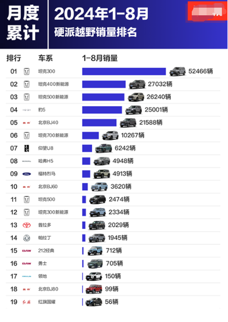 作为国内逐渐兴起的全新细分消费市场,硬派越野越发受到了消费者的青睐,许多车企看到快速增长的需求后也快速推出对应车型,而在其中,以坦克、比亚迪为主的自主品牌占据了大量份额。近期,1—8月国内硬派越野的销量数据正式公布,接下来我们就来看看前十名中有哪些车型吧。