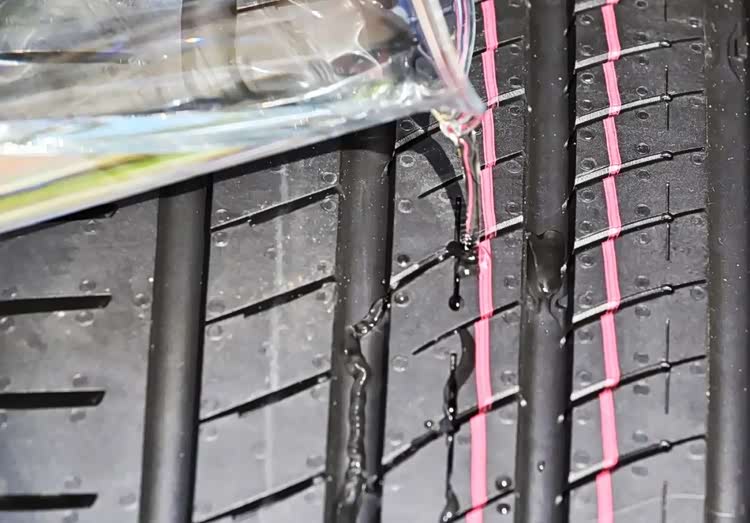 胎面上的高速增压导流槽可以迅速将水排入主沟槽