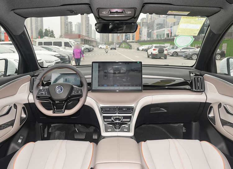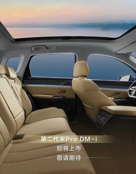 内饰方面,第二代宋 Pro DM-i 进行了大胆创新。它采用棕色主题内饰,门板简洁规整且大面积覆盖棕色材质,镶嵌的氛围灯带增添了车内的氛围感。座椅纹理变化明显,前排不再是一体式运动风格座椅。后排空调出风口样式调整,上方“BYD DESIGN”字牌取消,接口更新为 USB Type-A 与 USB Type-C。虽然此次官图未呈现仪表台设计布局,但参考此前谍照,新车秉承比亚迪王朝网最新内饰设计思路,贯穿式黑色饰板覆盖仪表屏,搭载与宋 L DM-i 造型相同的 D 型多功能方向盘,中央通道功能区也全新设计,水晶质感挡杆和手机无线充电面板等装备一应俱全。