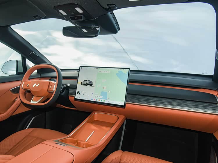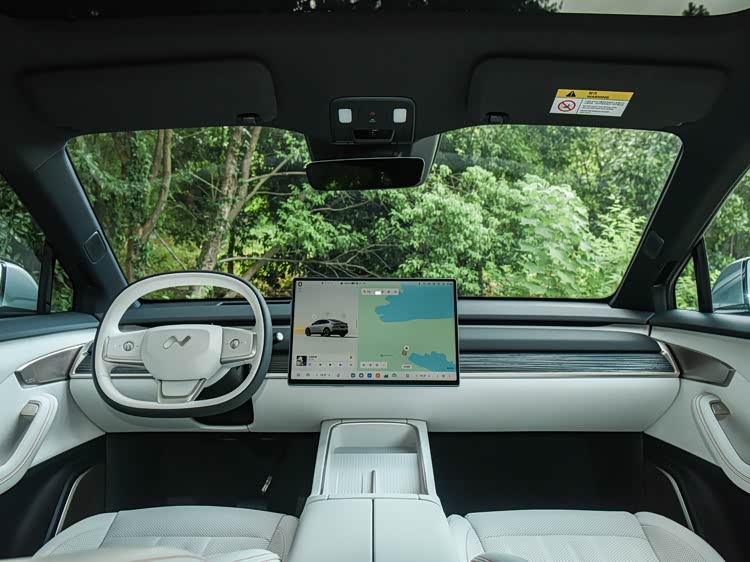 乐道L60车内设计风格与特斯拉Model 3/Y相似,采用无仪表盘设计且未提供任何实体按键,行车信息通过中控屏以及主驾前方HUD抬头显示功能展示。该车配备17.2英寸中控屏,采用全新Coconut椰子车机系统,整个中控界面简洁,底层为地图,左侧提供3D车模,支持3D车控,底栏则显示有车辆设置、空调、应用程序、音量控制等快捷键,所有二级菜单均以上滑的方式弹出显示。