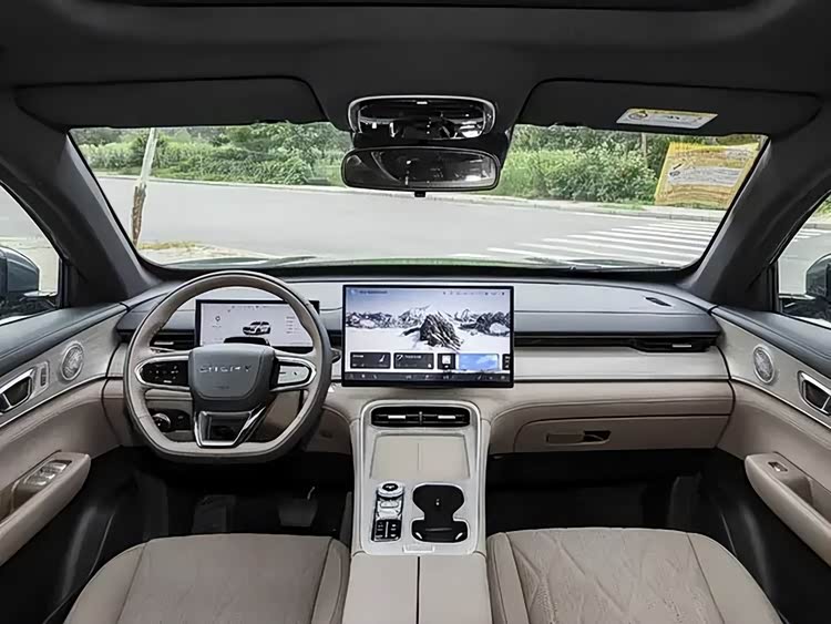 内饰方面,跟现款车型完全不一样。全系车型标配瑞虎8L同款的15.6英寸的悬浮式中控大屏,既简洁又充满了科技感。这块屏幕还支持2.5K高清显示,搭载了雄狮智能车机系统。