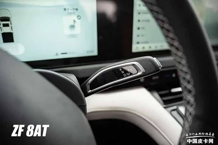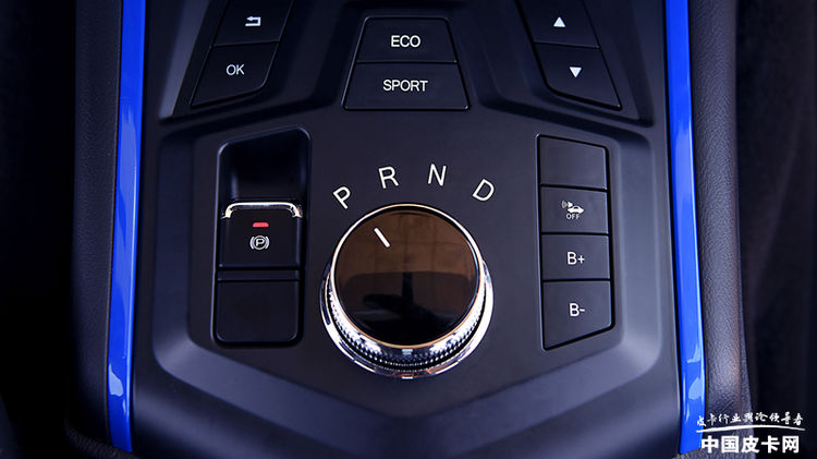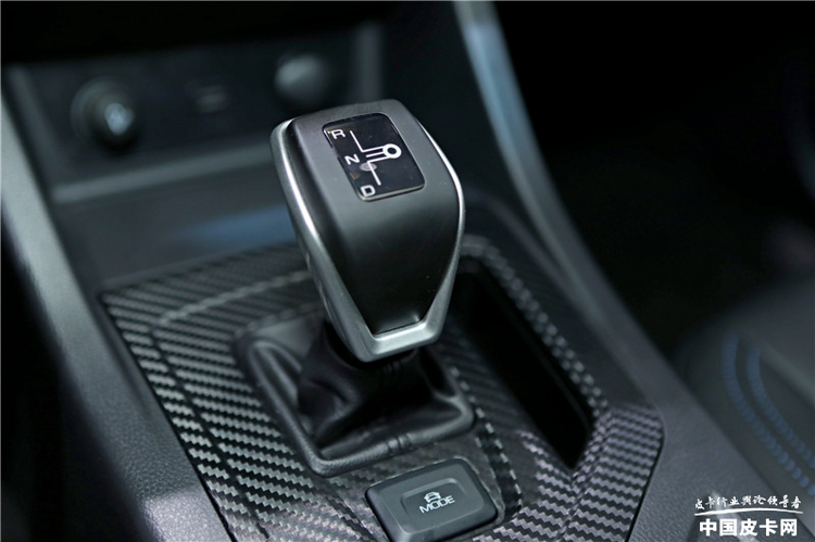 犹如欧美传统汽车的怀挡挡杆既然是电子挡杆,那么挡杆与变速箱之间不需要“硬连接”,挡杆可以设计的更“灵活多变”。在新能源汽车市场中,很多乘用车都开始使用类似欧美老车的那种怀挡,样式新颖,也节省了车内副仪表板的空间,可以在这里开发其他功能。而这种设计也慢慢的在皮卡市场中传播开来,将换挡杆放在方向盘右后,但第一台采用怀挡的国内皮卡并不是新能源车。