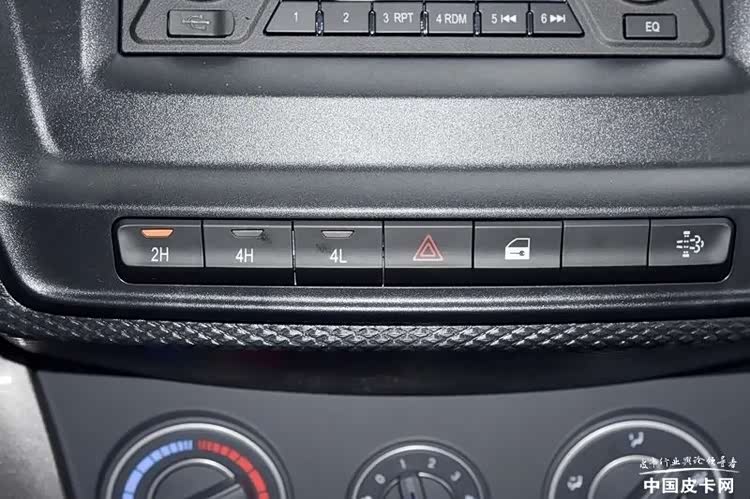 “普遍现象”的四驱切换旋钮相比于电子挡杆,电控四驱切换在皮卡上应用的更早一些,所以很早就有了旋钮切换四驱模式的功能,即使是相对传统的分时四驱皮卡,一般也都在使用旋钮切换的方式。而这种设计最大的好处就是方便操作,并且少占空间。而且对于同款车型的两驱版本,只要把四驱旋钮的“洞”给堵上即可,在控制成本方面也非常优秀。而很多带有全地形模式的皮卡,同样也是用旋钮来选择对应的地形模式,与四驱切换旋钮同理,都是极为常规的设计。