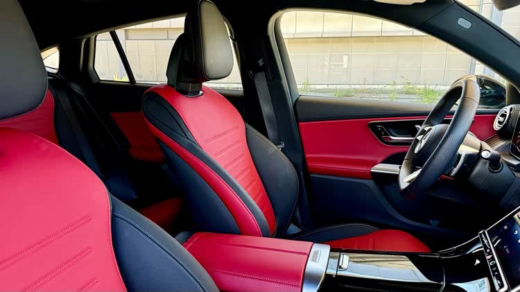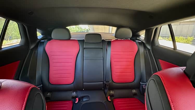 既然是轿跑SUV,除了拥有运动的外观造型,内饰当然也不能掉队。黑红颜色的座椅让人看着就有极强的驾驶欲望,整个座椅的包裹感和舒适度都很在线,不会因为它是运动型座椅而在驾驶时产生疲劳感。虽然它在轴距方面比国产长轴距版GLC SUV要短了89mm,但是以我本人183cm的身高,坐在后排时并不会觉得压抑,整体空间还算可以,很符合它轿跑SUV所应有的表现。