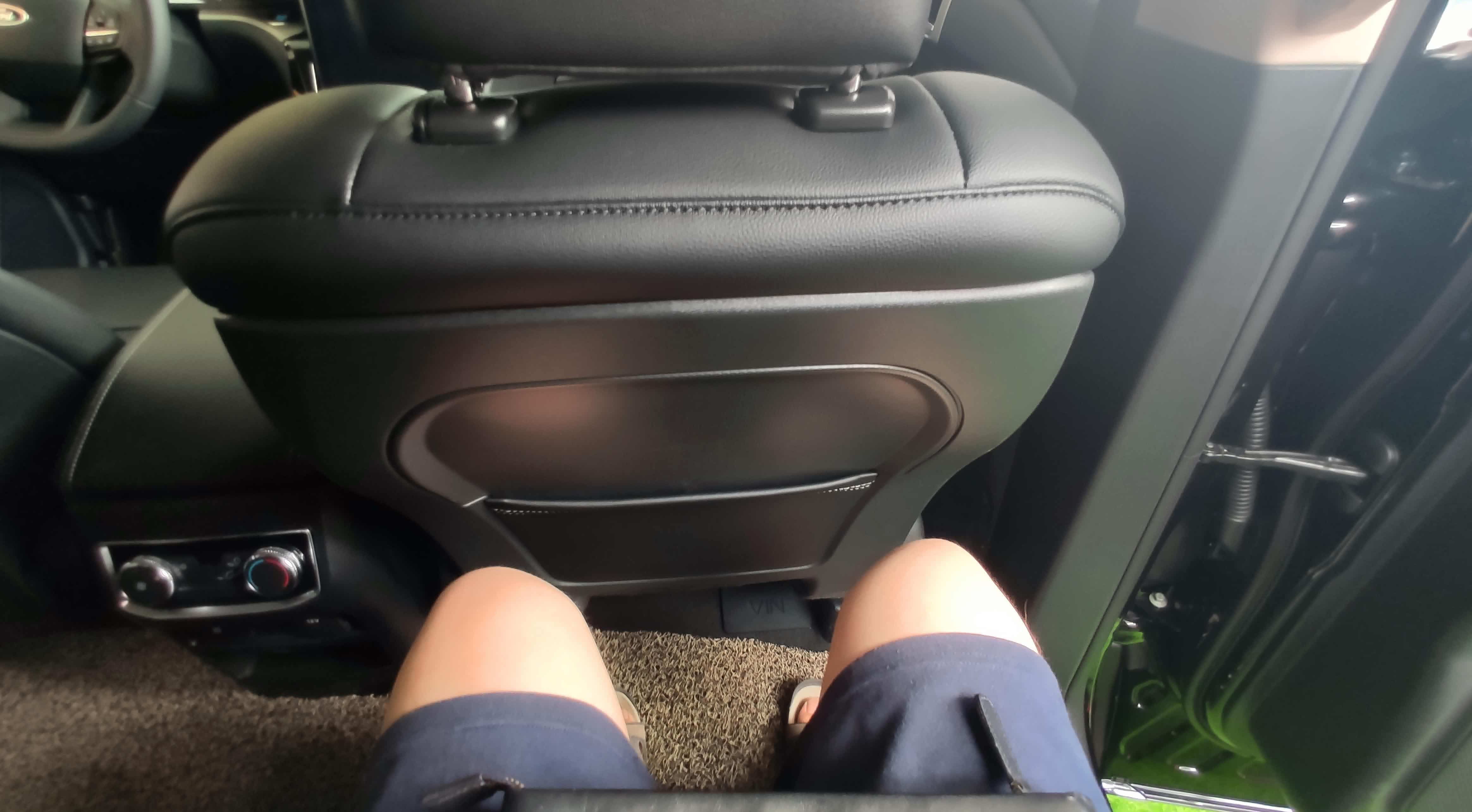 乘坐舒适感和储物空间方面,第一排没什么问题,第二排储物空间也够,侧面有不少凹槽可以放东西,但乘坐时感觉第二排坐垫不太长,第三排难得的是储物空间也够,乘坐舒适性比小板凳好一些,由于底台过高,腿部需要蜷缩起来坐。