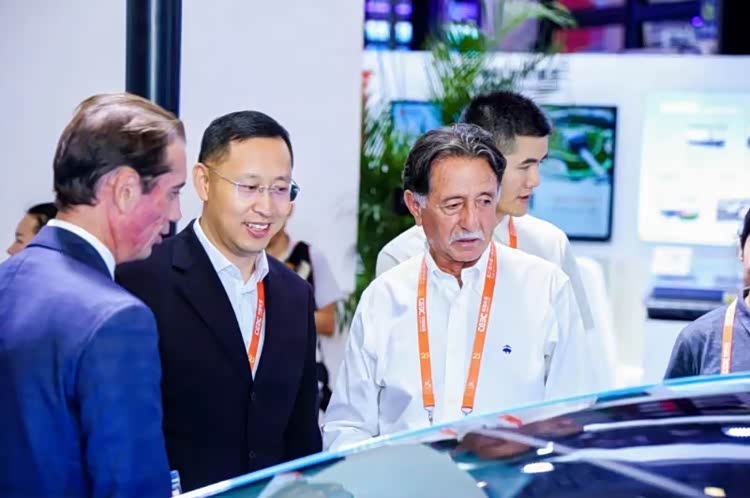 哪吒汽车亚太大区国际销售总监高鹏与参会嘉宾交谈