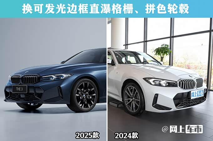 2025款3系换装环形发光格栅,增加极速蓝、布鲁克林灰色车漆以及2种新造型轮毂。车内采用平底M运动真皮方向盘,增加出风口氛围灯、水晶质感组件。