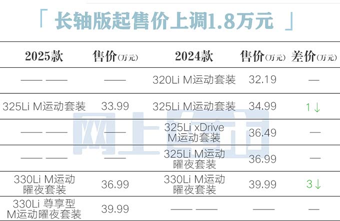 车家号·0浏览·2024-09-26 11:41 · 北京宝马2025款 3系(参数|询价)上市,官方售价区间31.99-39.99万元,相比2024款取消了320系列(2.0T低功率),起售价上调2万元,部分车型下调1-3万元不等。新车调整外观、内饰细节设计,还对配置进行了升级。