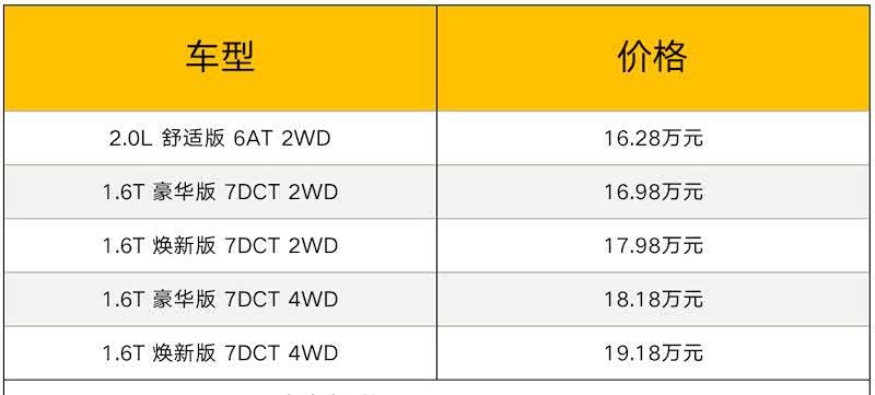 动力方面,新车配备了1.6T发动机,最大功率177马力,最大扭矩265牛·米,搭配7速双离合变速箱,并提供四驱车型。2.0L发动机仅保留一款车型上搭载,该发动机最大功率165马力,最大扭矩203牛·米,搭配6速自动变速箱。