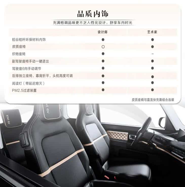 内饰方面,新车的“设计师”车型采用织物材质,而“艺术家”车型配备了皮质座椅,并支持主驾驶座椅6向调节、副驾驶座椅一键进出等便捷功能,令其更具实用性。