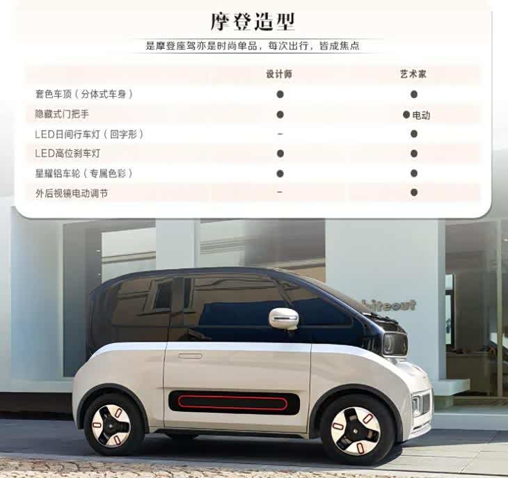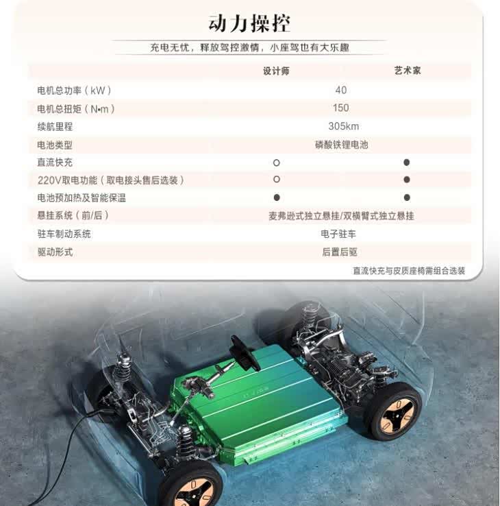 动力方面,新车全系标配40千瓦电动机和电池预加热系统,最大续航里程可达305公里。值得注意的是,“艺术家”车型还搭载了直流快充及220V取电功能,为用户提供了更多便捷体验。