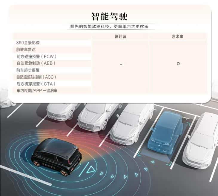 安全配置方面,新车全系标配ESC车身稳定系统自动驻车、低速行人提示及直接式胎压监测等主被动安全科技配置。另外,“艺术家”车型还可以通过智能选装包获取多场景智能泊车系统、ACC全速自适应巡航、AEB紧急制动、360°全景影像等多重高阶智能驾驶功能,提升用户用车便捷性及行车安全性。