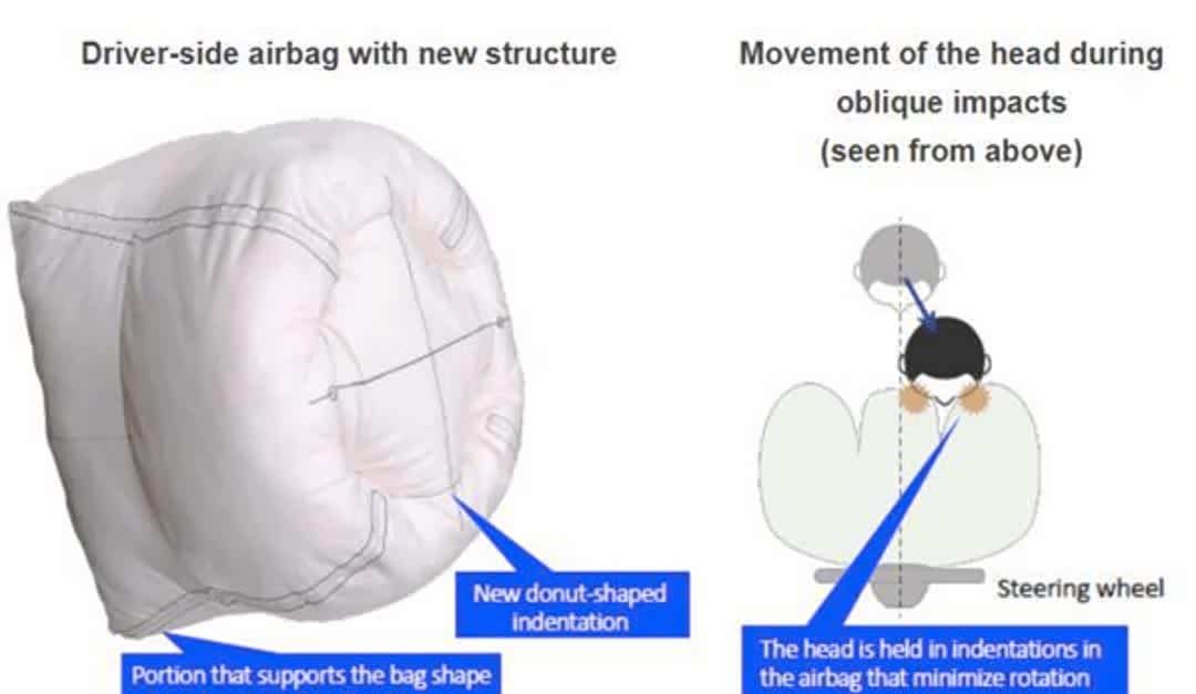 该安全气囊已搭载在2021年6月在北美推出的新本田思域(Civic)上,安装于方向盘中央,新型安全气囊采用了创新的甜甜圈形结构,中间部分向内凹陷,能够在正面碰撞时支撑和固定头部,强化正面碰撞中的安全性。