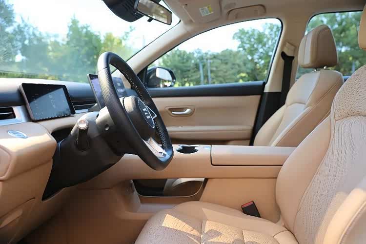 胡桃棕同色系一体化内饰搭配舒芙蕾座椅,提供前所未有的乘坐享受。主副驾座椅均支持电动调节及通风加热功能,确保每位乘客都能享受到个性化的舒适体验。此外,蓝电E5 PLUS还配备了超大尺寸全景天幕、专属怀挡设计以及丰富的娱乐配置,让每一次出行都成为一场豪华之旅。