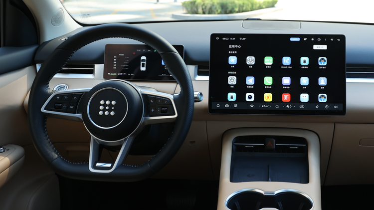 蓝电E5 PLUS搭载了全新15.6英寸FHD超大悬浮式智能中控屏,配合HUAWEI HiCar 4.0系统,实现了车机体验的全面升级。毫秒级响应速度、流畅的操作界面以及全场景语音交互功能,让驾驶者能够轻松享受智能科技带来的便捷与乐趣。海量生态应用的融入更是让车内生活娱乐一应俱全,满足年轻消费者的多元化需求。