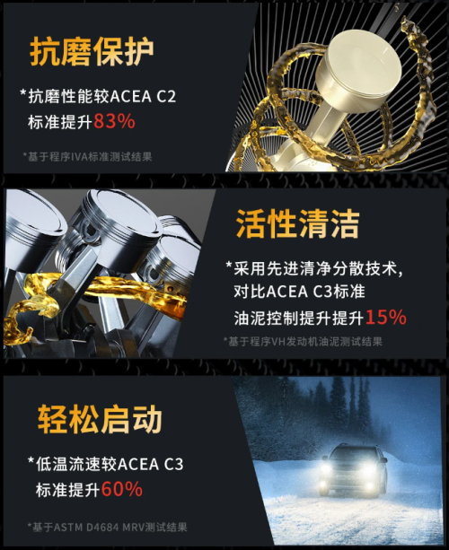 如此一来,发动机启动时,因为金属面上已经覆盖了油膜,自然也就大幅度降低启动阻力和压力,确保冷启动时,将磨损控制到最低程度了。这个特性对于混动汽车而言也至关重要。因为混动车的发动机一旦启动后,就直接进入中高速运转了,基本就没有“怠速预热”的过程。因此对机油的油膜保护能力有极高要求。