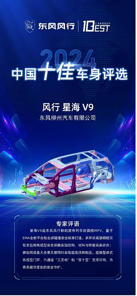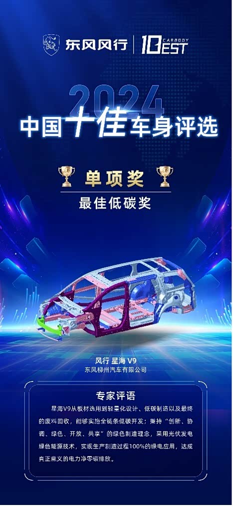 此次荣获“2024中国十佳车身”及“最佳低碳奖”的殊荣,不仅是对星海V9在车身技术领域杰出表现的认可,也是对东风风行品牌实力和技术实力的肯定。展望未来,东风风行将继续秉承“心怀星海,共赴美好”的品牌理念,坚持自主研发,推动产品技术创新,致力于为消费者提供更高品质、更高安全性的汽车产品,助力中国汽车制造业迈向高质量发展的新征程。